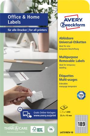 Etikett, univerzális, eltávolítható, 25,4x10 mm, AVERY ZWECKFORM, 1890 etikett/csomag