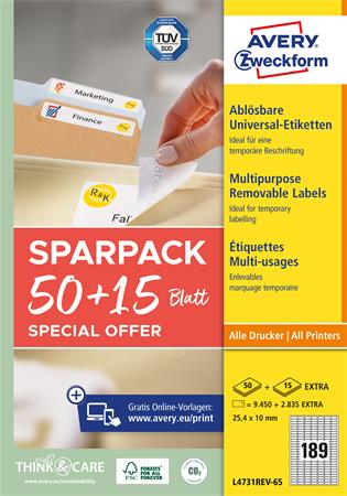 KezdőlapIrodaszerekIrodai papíráruEtikettekEtikett, univerzális, eltávolítható, 25,4x10 mm, AVERY ZWECKFORM, 9450+2835 etikett/csomag